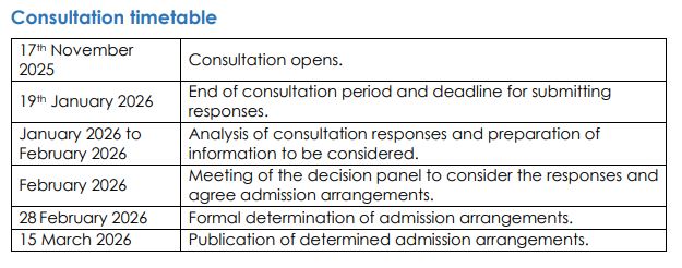 The Statutory Consultation on one proposed change to the admission arrangements for St Bede’s R.C High School for September 2027 has now closed.
