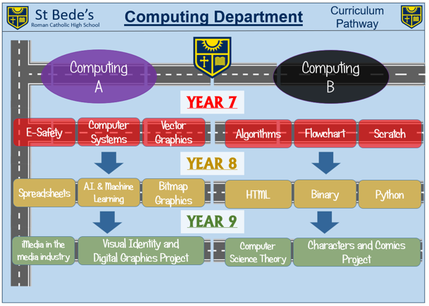 Our Year 9 Computing curriculum prepares students for the transition into KS4 study by combining theoretical knowledge with project-based learning. Students explore the impact of computing on society, develop advanced programming skills, and engage in creative digital media projects. By working through extended assignments split into two parts, they experience a more professional design and development process, building resilience, independence, and technical expertise. This approach ensures that students are ready to meet the challenges of formal qualifications in Computing.