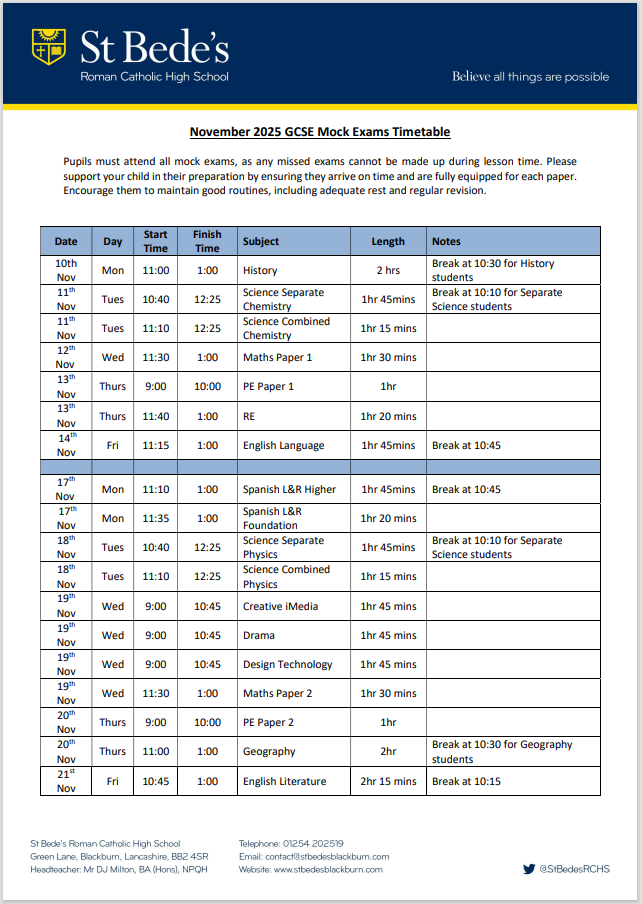 Please click here to download a copy of the Year 11 Mock Exams as a PDF document
